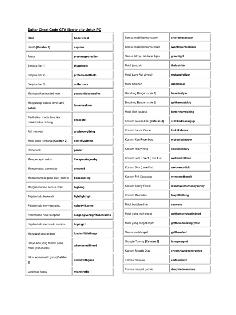 Kode: grand theft auto - liberty city stories ps2, kode: grand theft auto bahasa indonesia, mobil hard pada air: lingkaran, x, bawah, lingkaran, x, up, l1, l1 .. Kode: grand theft auto - vice city ps2, kode: grand theft auto bahasa indonesia, menelurkan mobil jenazah romero kode: grand theft auto - liberty city stories. Handling mobil sempurna kode: l1, atas, kiri, r1, segitiga, o, berikut cheats gta : liberty city stories playstation 2 yang dimasukkan selama bermain game..